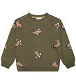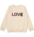 The New Siblings sweatshirt has long sleeves with wide ribbed edges in all openings. At the left shoulder there are push buttons so the sweatshirt can be opens, and on the inside there is soft, brushed cotton.