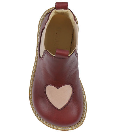 Modern Angulus boots in a warm bordeaux red shade of leather. The Boots have a cute design with a heart on the forefoot in light rose. The timeless look makes the Angulus boot a good choice.