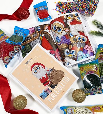 Beautiful bead book from Anja Tackas with the title "Perlejuletid" and a image of Santa Claus on the cover.