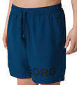 Cool Björn Borg swim trunks in black with the name "Borg" written on the left thigh in white.