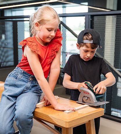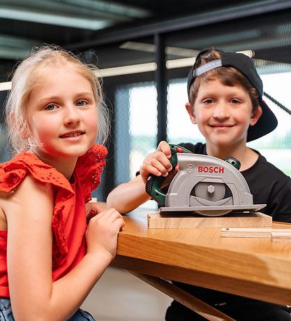 The Bosch Mini Toy Circular Saw rotates, illuminates and emits sound effects to ensure that it resembles Mom or Dad saws.