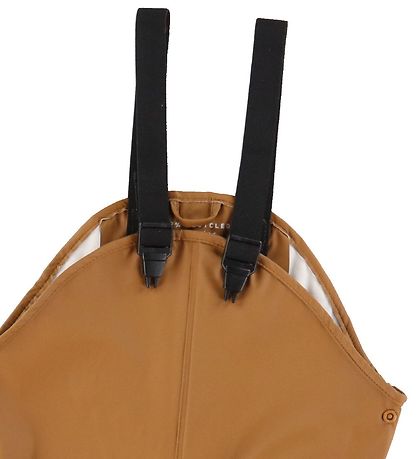 The CeLaVi rain pants have black, adjustable elastic sheaths, which can be opened at the front with click buckles. The trousers can be tightened to the sides with a push button. The rain pants have elastic edges around the leg openings and adjustable, detachable elastic straps to put under the rubber boots.