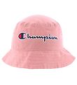 Smart Champion bucket hat in pink with "Champion" embroidered in navy, white and red.