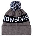 Cool DC knitted beanie in black with a horizontal stripe in blue with the text "Snow Boarding DC" in white.