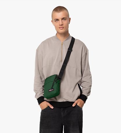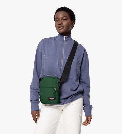 The Eastpak bag has a square shape and opens at the top with a zipper with two sliders. Inside there is a smaller Rum, which also closes with a zipper. On the outside, the shoulder bag has a zipper pocket on both the front and back.
