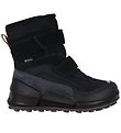The Ecco winter boots have a medium-high shaft that goes over the ankle. They close at the front with Velcro straps, so they are easy to put on and take off. They have a Fast heel and toe cap which protects the feet and provides stability. The Winter boots have a lightweight, white midsole and a light blue outer sole, which is made of durable and flexible rubber with a good skid pattern under the bottom, which ensures a stable foothold. Inside there is black, faux wool lining and removable insoles. The Winter boots have a Gore tex membrane which keeps the feet dry and warm in the cold months.