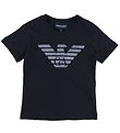 Cute Emporio Armani T-shirt in navy with 'Emporio Armani' text on the front in silver glitter print.