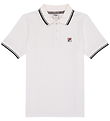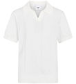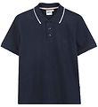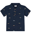 Stylish Grunt polo with short sleeves in navy blue knitted with a discreet striped pattern. The polo has a classic collar and ribbed edges at all openings.