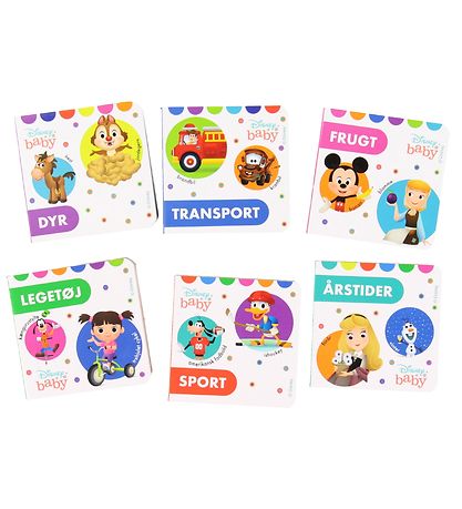 Informative Karrusel Forlag box set with a Disney theme and six different books, each with their own theme.
