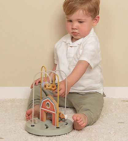 Exciting Little Dutch activity toy in the form of a in wood bead maze with painted details in a cozy farmhouse theme.