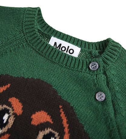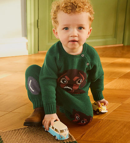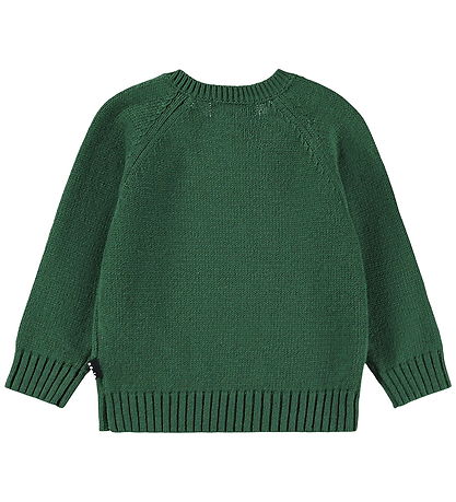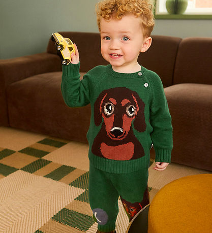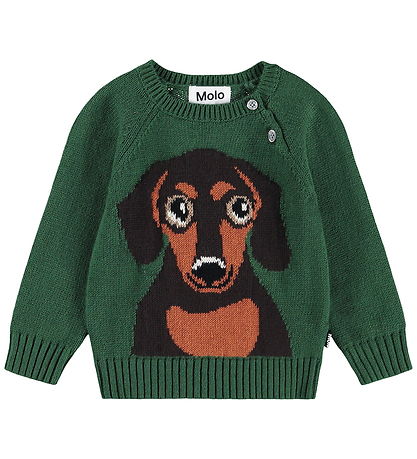 Charming Molo blouse in a green, plain knit quality and with a charming motif of a dachshund. The Blouse has practical buttons at the shoulder that make it easier to get the blouse on and off and it is made of a soft and comfortable blend quality.