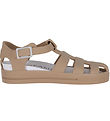 Beautiful Molo flip flops in dark blue with palm tree applications on the straps, depicting happy smileys. The Molo flip flops have a wide strap over the feet. The insoles are shaped to follow the shape of the feet for an optimal fit. Under the bottom there is a tread pattern, which ensures a good foothold.