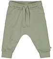 The Müsli trousers have long leg and a narrow elastic waist. There are three decorative ruffles at the back. The Trousers have a tight fit like leggings.