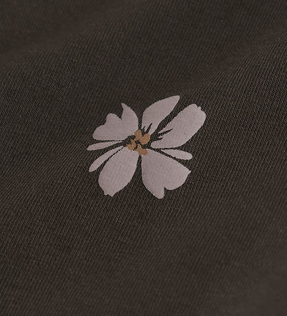 Elegant Name It blouse with long sleeves in a dark brown. The Blouse has a round neckline and a little flower in lighter shades on the chest, which adds a subtle touch. The Name It blouse has slightly wrinkled details on the shoulders.