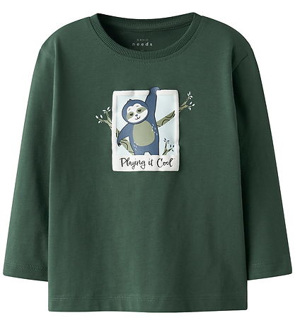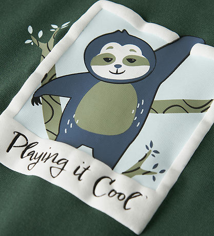 Lovely Name It blouse with long sleeves in a deep, green colour. On the front you can see a print with a happy figure, as well as the text "Playing it Cool". The Blouse has a round neckline, which contributes to the simple design. The Name It blouse is suitable for all seasons.