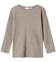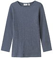Lovely Name It blouse with long sleeves in a subdued blue shade. The Blouse has a ribbed structure that adds a subtle pattern to the design. The round neckline gives a classic look, which makes the Name It blouse versatile in use.