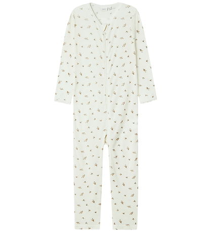 Charming Name It nightsuit with long sleeves in a beautiful off white shade. The Nightsuit has a beautiful floral pattern and is equipped with a zipper with chin guard that goes from the neck down, which makes it practical to use. The Nightsuit is made with lovely merino wool.