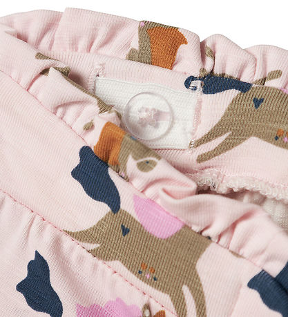 The Name It trousers have long legs with wide edges in the leg openings and at the waist there is a wide, adjustable elastic edge. At the waist there is a fine ruffle edge, and at the front there is a decorative bow. The Trousers are made in a soft and comfortable cotton quality.