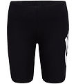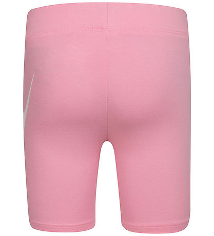 Beautiful Nike bicycle shorts in pink with a large, white logo print on the left leg. The Nike cycling shorts have a good elastic at the waist and a tight fit with short legs.