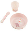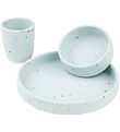 The OYOY plate and bowl both have a wide edge, which has a twisted appearance. The Set can be used for many different things, as it is food approved and can withstand both dishwasher and microwave. The Set is in a good silicone quality.