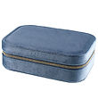 The jewelry box consists at the top of one large compartment with a light green for and with a mirror in the lid. At the front you can pull out a small drawer at the bottom.