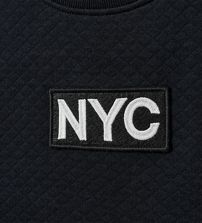 Nicely quilted Sofie Schnoor blouse in black, with "NYC" written on the front in black and white.