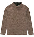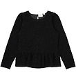 The New blouse has long sleeves, and it has a high, close-fitting neckline, which closes at the neck with two small black buttons.