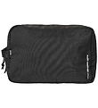The North Face toiletry bag has a square shape and consists of one large Rum that opens around the top with a zipper. Inside there is a waterproof zipper pocket on one side, while the other side has a zipper pocket and a mesh pocket with a zipper as well as a little mirror. The Toiletry bag is carried by a handle at the top.