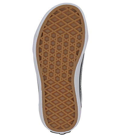 The Vans shoes are closed over the instep with white shoelaces, and in the opening of the shoe there is smooth leather that makes the shoe easy to put on and take off. The shoes have a wide, white outer sole with the characteristic and well-known window pattern, which ensures a good foothold.