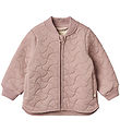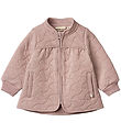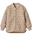 Lovely Wheat thermo jacket in pink with an allover floral print with a wavy, quilted structure.