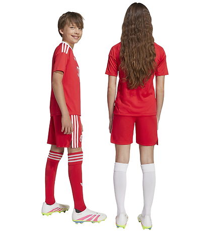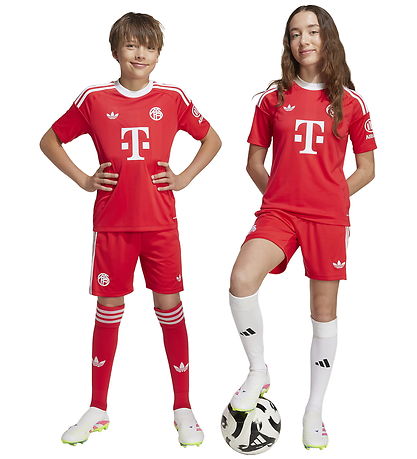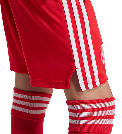 Great adidas Originals shorts in red with white details, and at the bottom of the right trouser leg there is a logo from the German football club FC Bayern Munich. The Shorts are inspired by the team's home goalkeeper shorts in the 25/26 season.