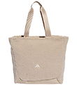 Beautiful adidas Performance shopper in beige teddy fleece. The adidas Performance shopper opens at the top with a hidden zipper, and it consists of one large Rum with a gray, smooth woven lining. On one side there is a large, quilted pocket, which is closed with a strap with velcro, and here there is space for, for example, a laptop.