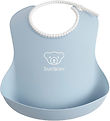 The Bib closes at the neck with a soft and adjustable closure. There is a practical collection pocket at the front. The Bib is dishwasher safe and easy to wipe clean.
