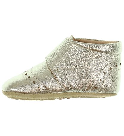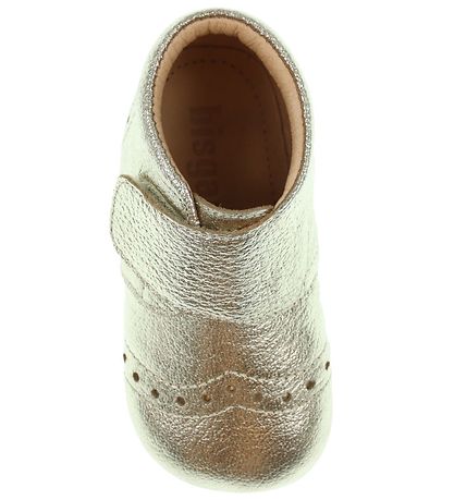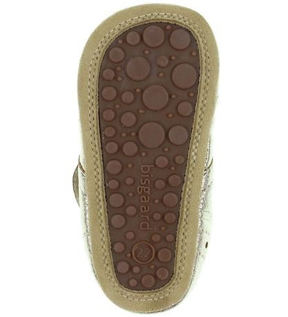 Fine Bisgaard soft sole leather shoes in gold-colored leather with a nice pointelle over the foot and behind the heel.