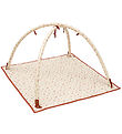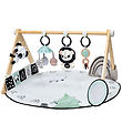 The stand itself is easily and quickly attached with velcro and can easily be removed again, so the activity blanket can be used on its own. The stand has room for many different pendants, which are easily hooked on with the elastics on the included animals, so they can be placed as desired.