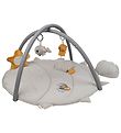The blanket is designed as a cute fish with fins that act as zero flaps and a single as a support cushion. The blanket is incredibly soft and thick with a quilted design, so the child can lie on it comfortably. The blanket comes with 5 different sea animals in the form of activity toys that stimulate the child's senses. The activity toy is hung on the stand with the included C-rings.