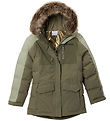 The Emporio Armani jacket has a cut like a bomber jacket. It is a card model and it has wide ribbed edges. The Jacket opens with push buttons, and at the front there are open, fleece-lined pockets. The Jacket has a smooth woven and it has a light padding with polyester.