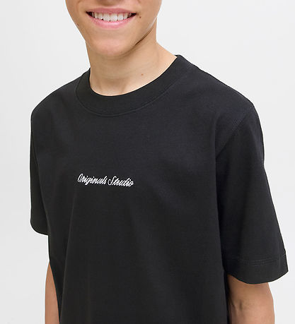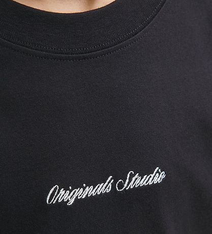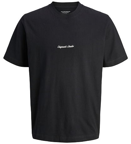 Stylish Jack & Jones t-shirt in classic black. The T-shirt has a simple print with the text "Originals Studio" centrally on the front, which gives a modern look. The Jack & Jones t-shirt has a round neckline with ribbed edges, which completes the minimalist look.