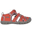 The KEEN sandals are a closed model that is tightened with elastic lace over the instep and closed at the top with a Velcro strap. The Sandals have a heel strap, so they are easy to put on and take off.
