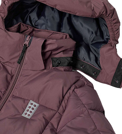 Lovely LEGO® Wear puffer jacket in dark purple with horizontal stitching.