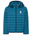 On the front left side and at the bottom of the back there is a practical reflector shaped like a LEGO® block. The duvet jacket has a smooth woven lining and a light polyester padding.