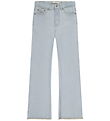 The Levis jeans have long legs and a tight fit. They have an adjustable elastic at the waist, and they opens with a button and a zipper. Both front and back have practical pockets.