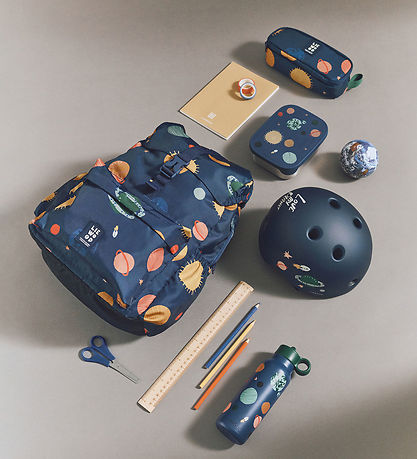 Nice Liewood pencil case in dark blue with a colorful print of planets.