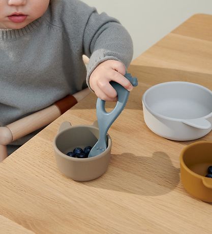 The Liewood spoons are designed for the little hands that need to learn to eat by themselves. They therefore have practical round handles with holes, and there are small markings on the mouthpiece of the spoon so that the kid can more easily get a sense of how far the spoon has to go.