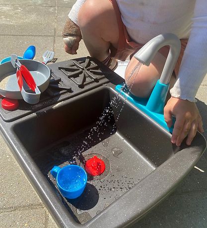 Exciting Little Tikes sink in black and white with colorful details. The dishwashing set consists of the following:
