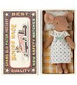 The Maileg soft toy comes in a nice wooden box, with a little mattress, pillow and blanket. The Soft toy is a perfect play set to start any story.