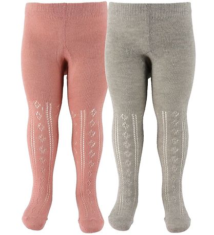 Fine Minymo tights sold in a 2-Pack in pink and melange grey with a nice pointelle.