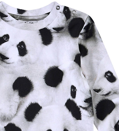 Beautiful Molo blouse with long sleeves in a classic black and white color combination. The Blouse is adorned with a vibrant panda print that adds a fun element to the wardrobe, and has push buttons on the left shoulder.