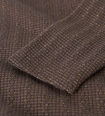 Elegant Name It blouse with a beautiful pointelle in a dark brown shade with a discreet striped pattern in gold and light brown.