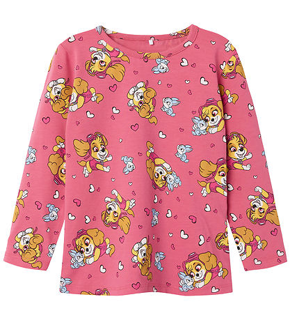 Charming Name It blouse in light rose with a colorful print of Skye from Paw Patrol, cute bunnies and hearts.